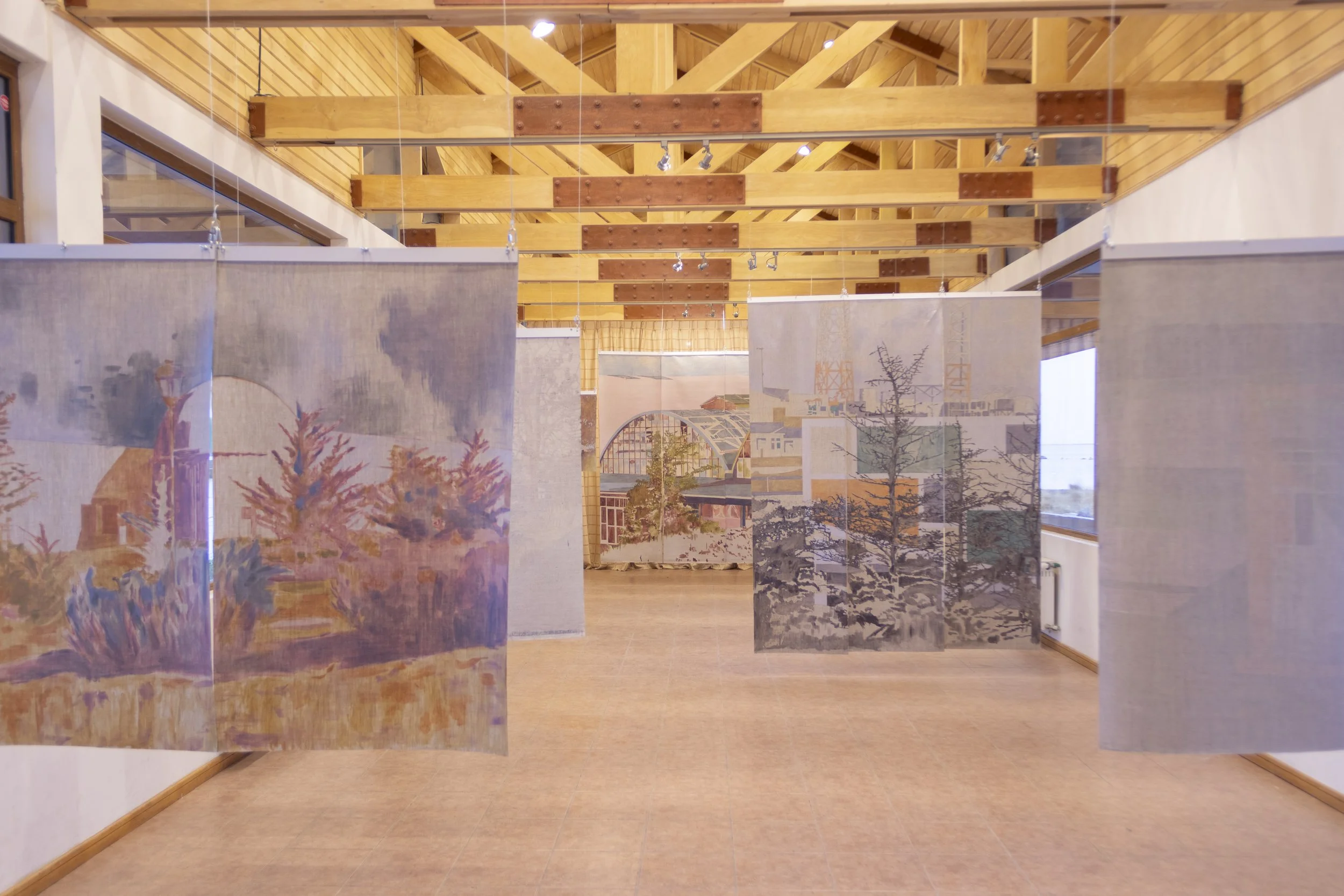 El proyecto “Destellos Lejanos” se presenta como una exposición itinerante de pintura que explora el paisaje del extremo sur de Chile. En Tierra del Fuego, busca encontrarse con el Pueblo de Cerro Sombrero, investigando sus estructuras arquitectónicas, y la utopía de su estilo moderno, en contraposición con su actual desuso y, en algunos casos, cierre y abandono. Estas edificaciones sobreviviente del frío, la geografía, el aislamiento y la historia, son un recordatorio, también, de la diversidad de formas de vida que habitan el territorio, desmitificando la temporalidad lineal que busca homogeneizar y encapsular la humanidad bajo una definición mundial y normada de progreso y urbanización.