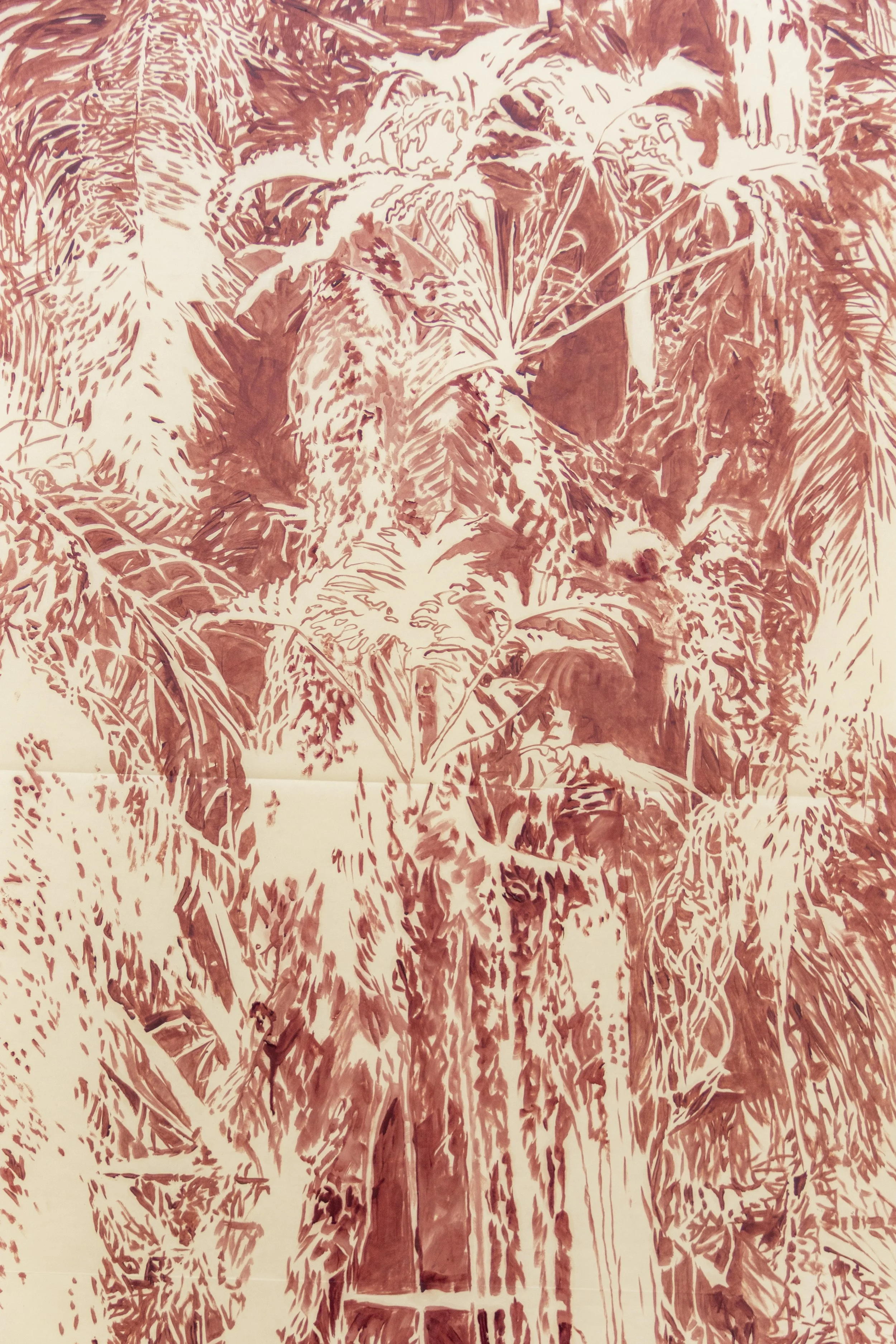 “Las vegetaciones pintadas por Fernanda Luz son refugios dinámicos, densos entramados y superficies casi cartográficas – más que paisajísticas – con límites aleatorios y bordes difusos, casi solapables y rizomáticas, en el sentido Deleuziano, en cuanto a comprender las relaciones entre las cosas como conexiones transversales, múltiples y sin orientación (no como la estructura arborescente con sus ramas arriba y sus raíces en el suelo).